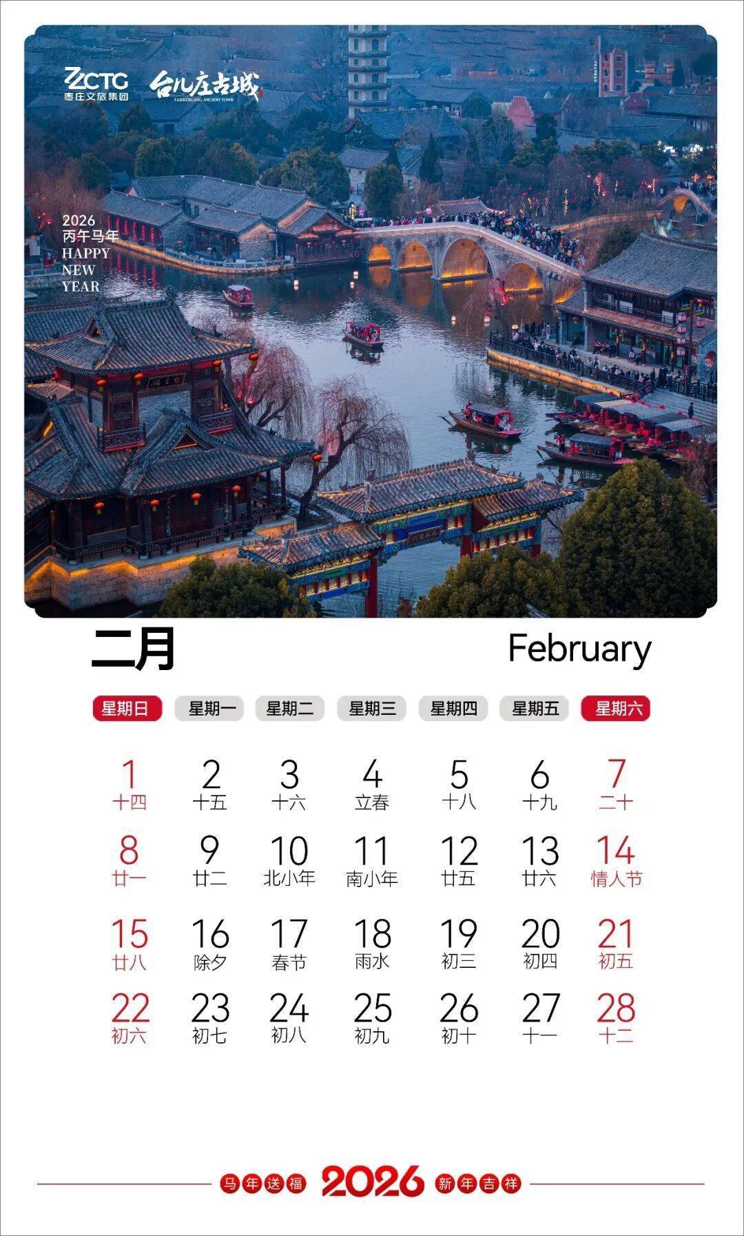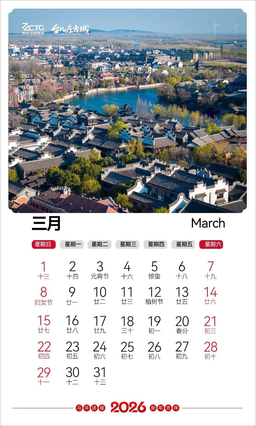 台儿庄古城悉心呈献12幅月历